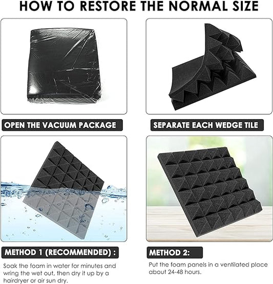 Pyramid Panels - Set of 50 | 1 Sqft, 2" Thick | 50 Density Studio Noise Reduction, Echo Absorption | Premium Grade | 3D Structure | Charcoal Black