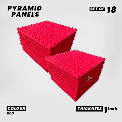 Pyramid Panels - Set of 18 | 1 Sqft, 1" Thick | 50 Density Studio Noise Reduction, Echo Absorption | Premium Grade | 3D Structure | RED