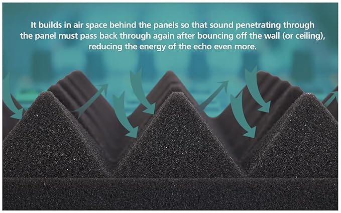 BETTER ABSORBPTION: YGM Acoustic Pyramid 1 inch Foam panels are best for echo reduction, sound diffusion and sound absorption ! More the surface area, better is Acoustic soundproofing.