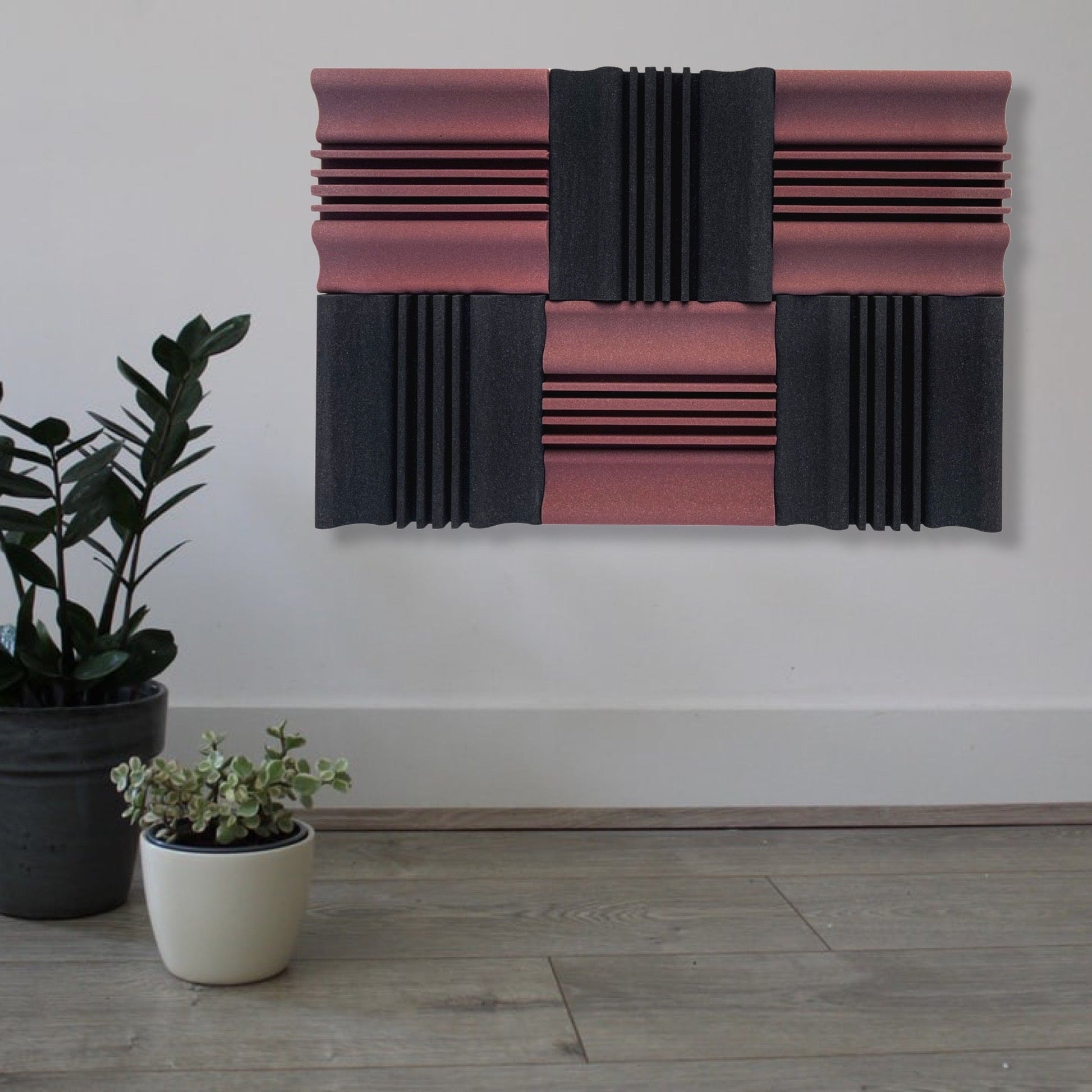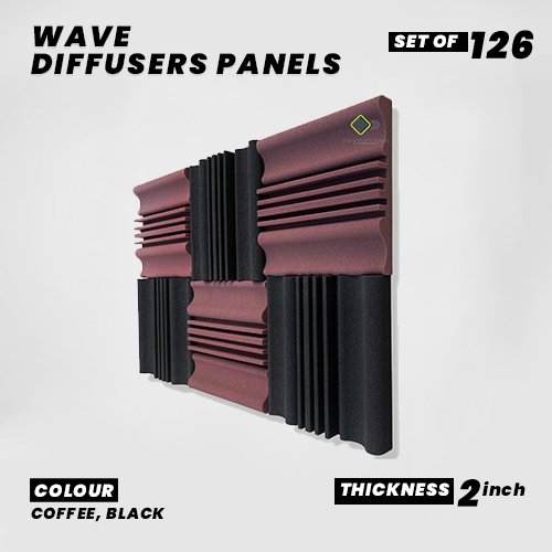 Wave Diffusers Panels - Set of 126 | 1 Sqft, 2" Thick | 50 Density | Premium Grade | 3D Structure Broadband Sound Absorber - Periodic Groove Structure | 63 COFFEE, 63 BLACK