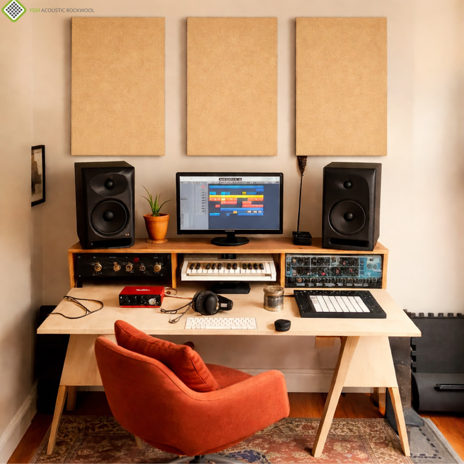 YGM Acoustic Rockwool® - Set of 4 | 4' x 2' x 1.5" | Sound Absorption Panels | NRC 0.92, 80 KG/M¬≥ Density | Room Isolation & Acoustical Soundproofing (Warm Beige)
